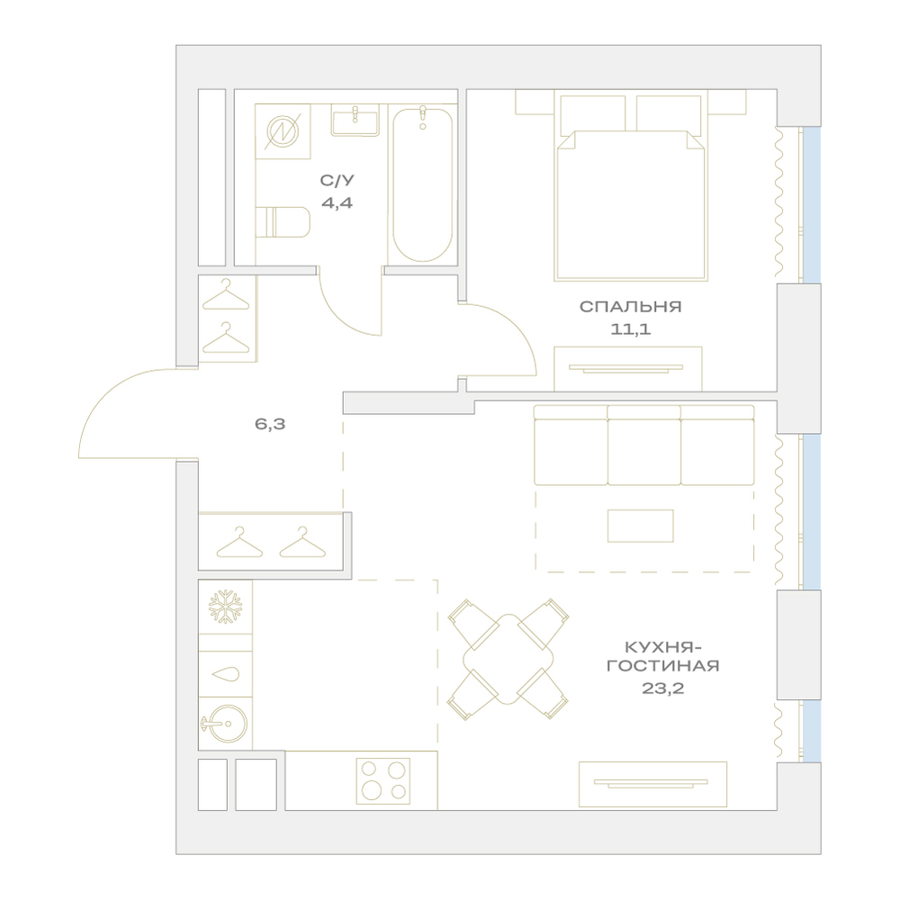 В жилом комплексе «Детали» есть квартиры без отделки, что позволяет воплотить любые идеи в интерьере.