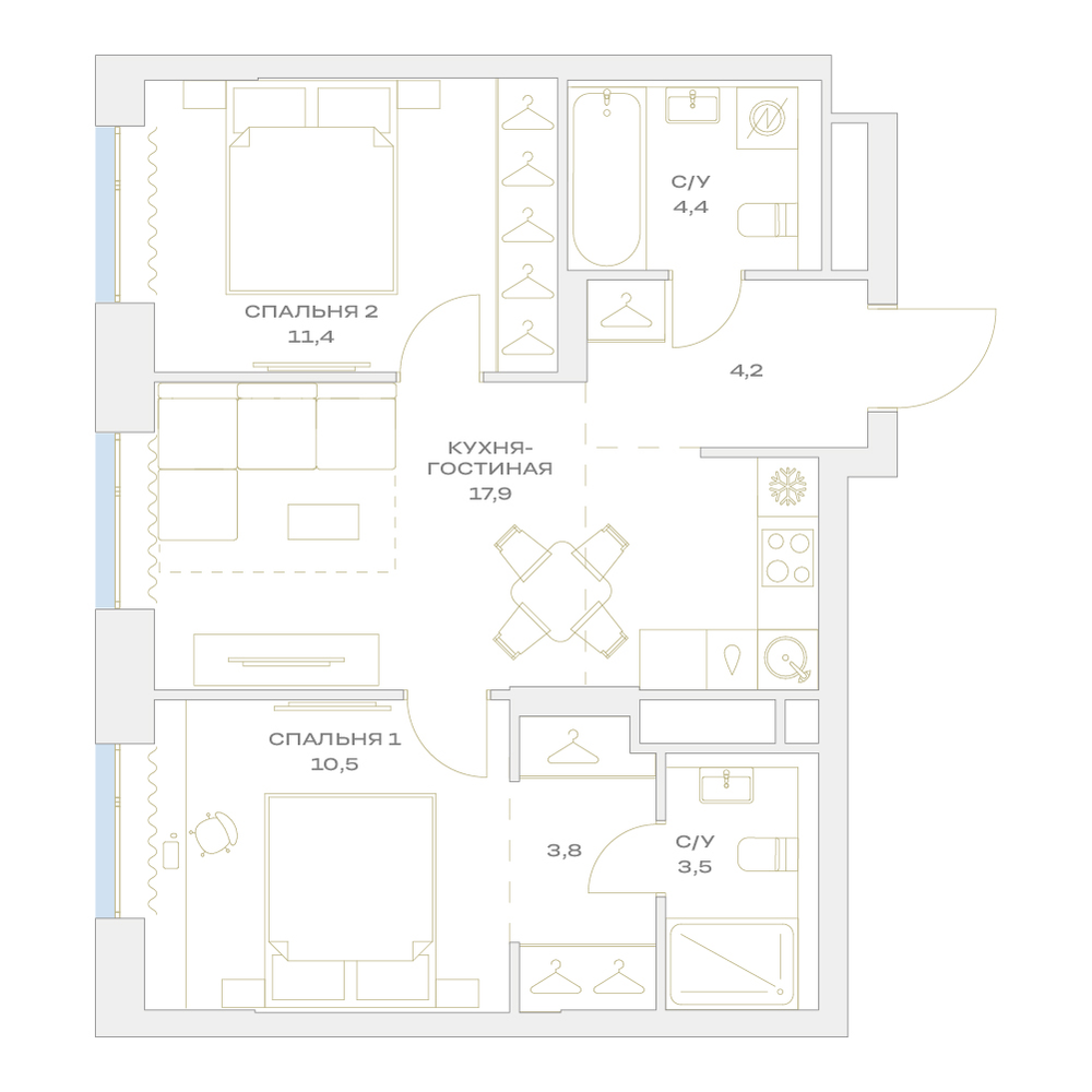 2-комнатная  55.7 м2