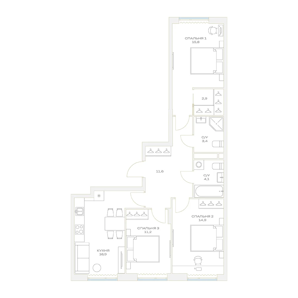 3-комнатная 84.3 м2