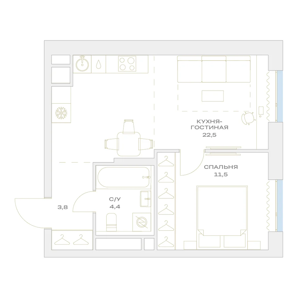 1-комнатная 43 м2