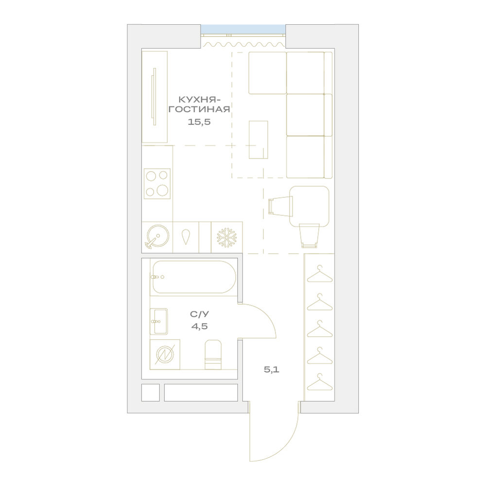 Студия  26.5 м2