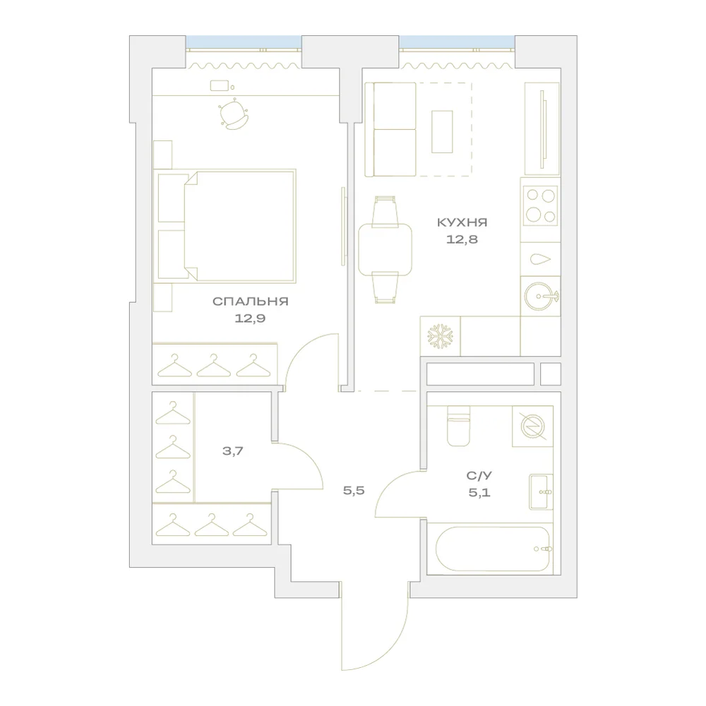 1-комнатная  40.5 м2