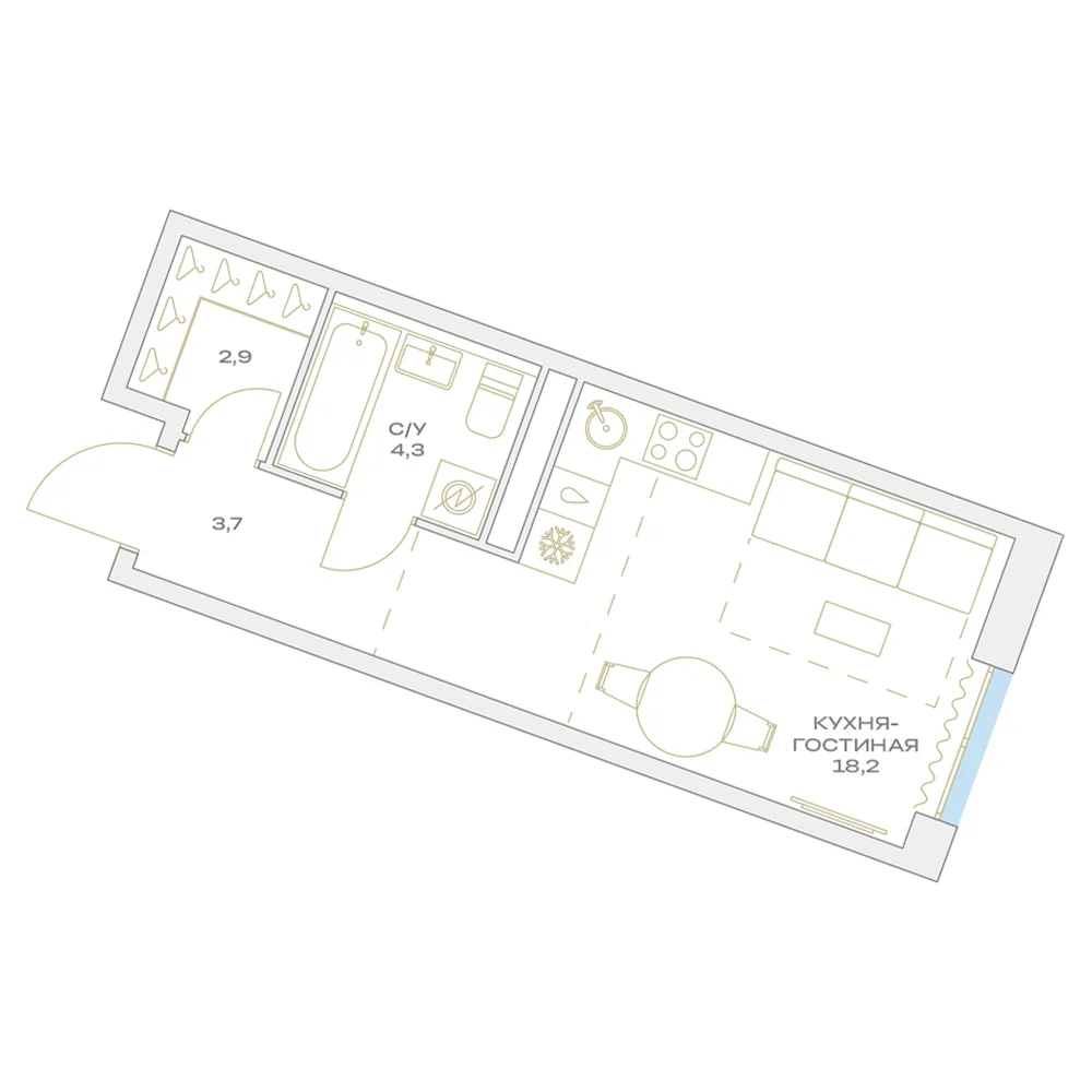Студия  28.2 м2