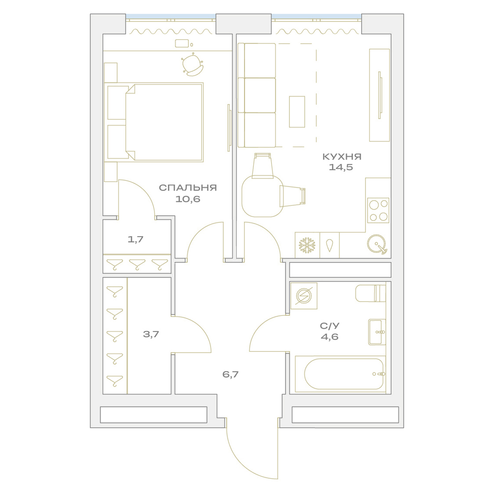 1-комнатная 41.3 м2