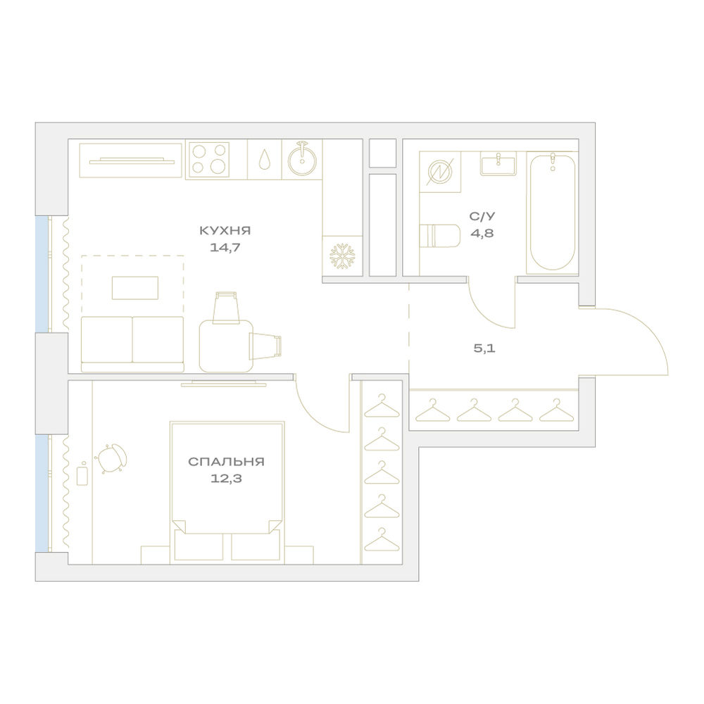 1-комнатная 37 м2