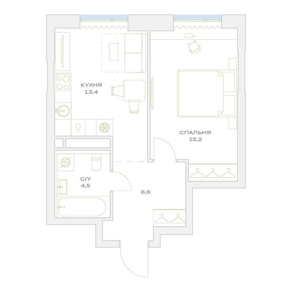 1-комнатная  41.6 м2