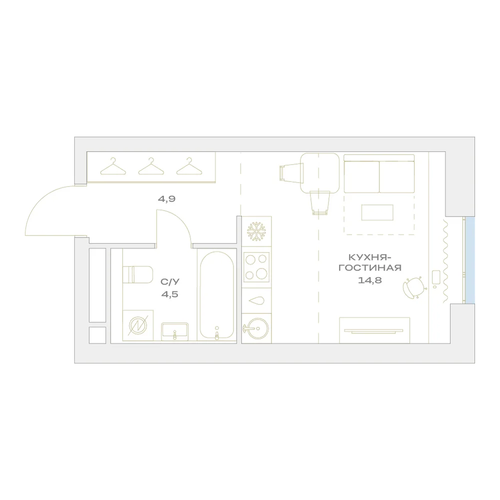 Студия 24.4 м2