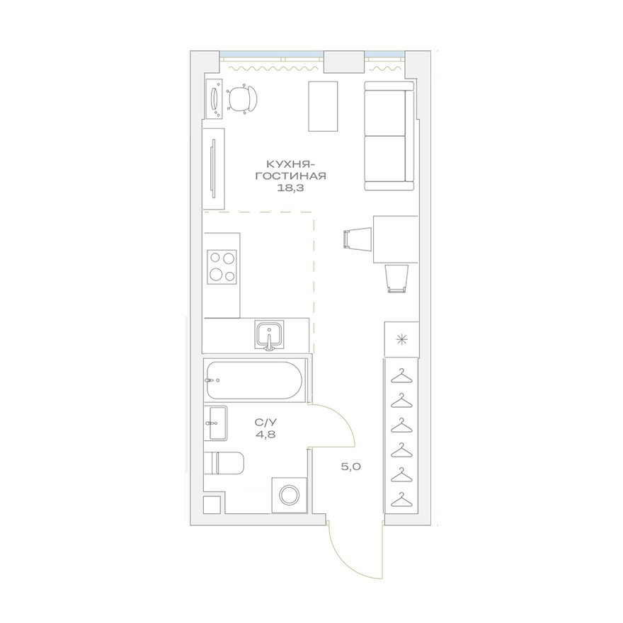 -кухня-гостиная с зонированиной кухней и зоной отдыха
